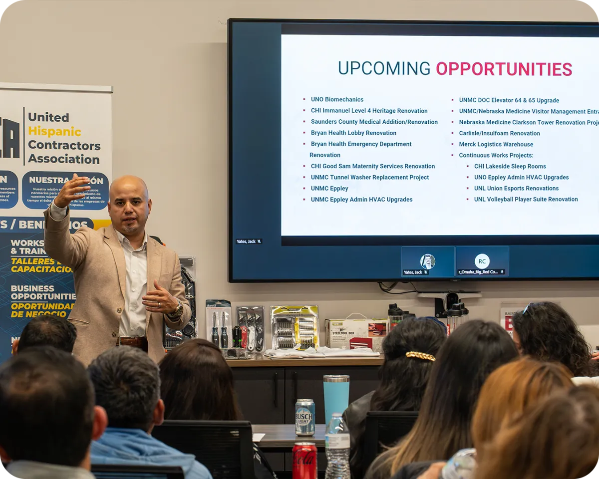 La misión de UHCA es promover y apoyar nuestra pequeña empresa propiedad de hispanos. Hacemos esto facilitando eventos de networking para todos nuestros miembros e invitados. Nuestros eventos de creación de redes se llevan a cabo por y en las ubicaciones de los contratistas generales, propietarios de proyectos o proveedores asociados. Nuestros miembros ganan al desarrollar relaciones, aprender sobre oportunidades de licitación y, con suerte, obtener un nuevo trabajo. Nuestros socios ganan al reunirse con subcontratistas para ayudarlos con sus objetivos de diversidad y fuerza laboral. ¡Es un gana-gana!